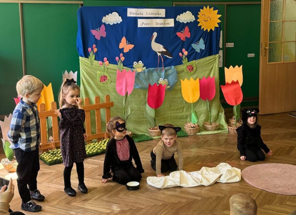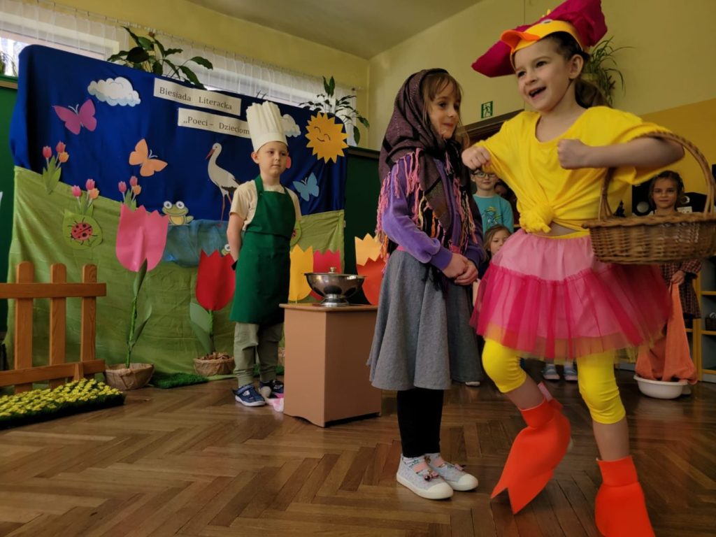 3 kwietnia odbyła się w naszym Przedszkolu ,,Biesiada Literacka” pod hasłem ,,Poeci dzieciom”.  Nie zabrakło pięknej scenografii, kolorowych strojów a nade wszystko idealnych prezentacji aktorskich umiejętności naszych przedszkolaków.