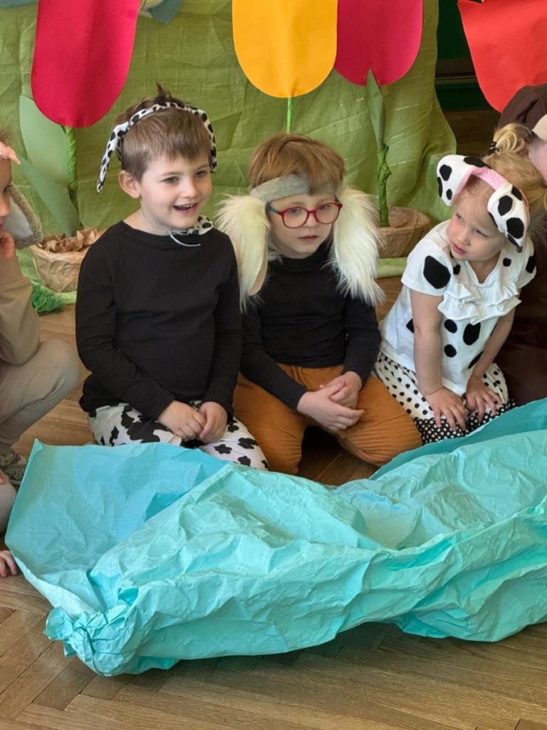 Na koniec, na wszystkie przedszkolaki czekała twórcza niespodzianka, gdyż Nauczyciele i Pracownicy przedszkola odegrali dla dzieci wiersz „Rzepka”.