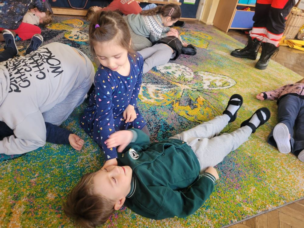 W naszym przedszkolu regularnie odbywają się comiesięczne warsztaty ratownicze, które w ciekawy i praktyczny sposób uczą dzieci, jak pomagać innym. Tym razem zajęcia poświęcone były udzielaniu pierwszej pomocy.