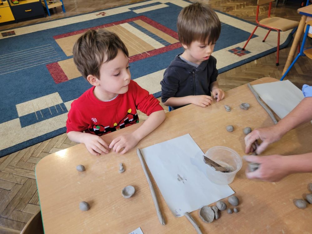 W naszym przedszkolu odbyły się przedświąteczne warsztaty ceramiczne, podczas których dzieci mogły spróbować swoich sił w lepieniu z gliny. Z ogromnym zaangażowaniem tworzyły wyjątkowe, samodzielnie wykonane ozdoby. Praca z gliną dostarczyła im wiele radości i była okazją do rozwijania kreatywności oraz sprawności manualnej. Atmosfera była pełna skupienia, ale też uśmiechów i dobrej zabawy. Efekty pracy pozostają jeszcze tajemnicą – gotowe dzieła zaprezentujemy w odpowiednim momencie jako świąteczną niespodziankę.