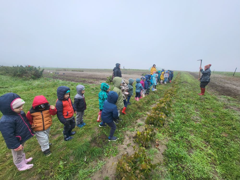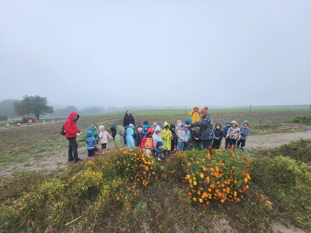 Dzieci wysłuchały opowieści o życiu na wsi, dowiedziały się, jak wyglądają jesienne zbiory, a następnie samodzielnie zbierały ziemniaki prosto z pola. Dużo radości sprawiło im karmienie osiołka i „dojenie krowy”, a także zwiedzanie stajni i obserwacja koni.